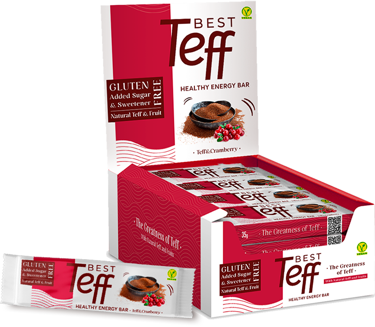 Pasta de dátil, copos de teff (30%), arándano deshidratado